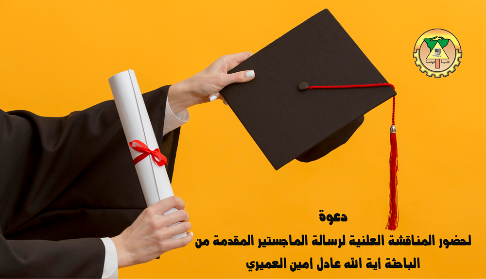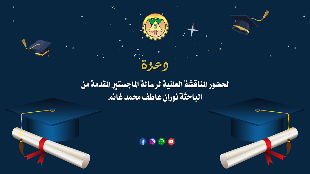يعلن قطاع الدراسات العليا والبحوث بكلية الهندسة جامعة طنطا وقسم الهندسة المعمارية بالكلية عن موعد انعقاد المناقشة العلنية الخاصة برسالة الماجستير المقدمة من الباحثة أية الله عادل أمين العميري