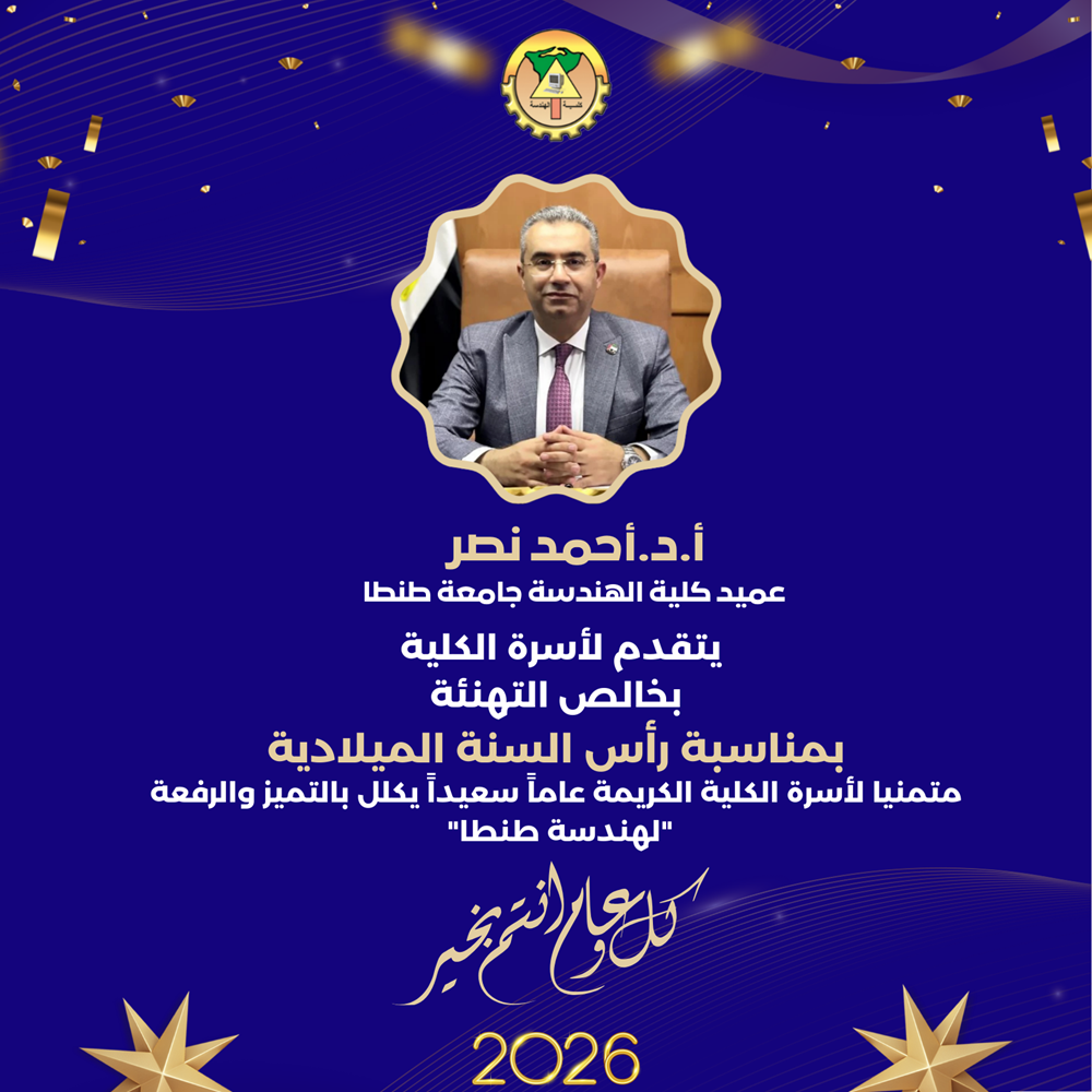 يتقدم الاستاذ الدكتور أحمد نصر عميد كلية الهندسة بخالص التهاني وأطيب الأمنيات للسادة وكلاء الكلية