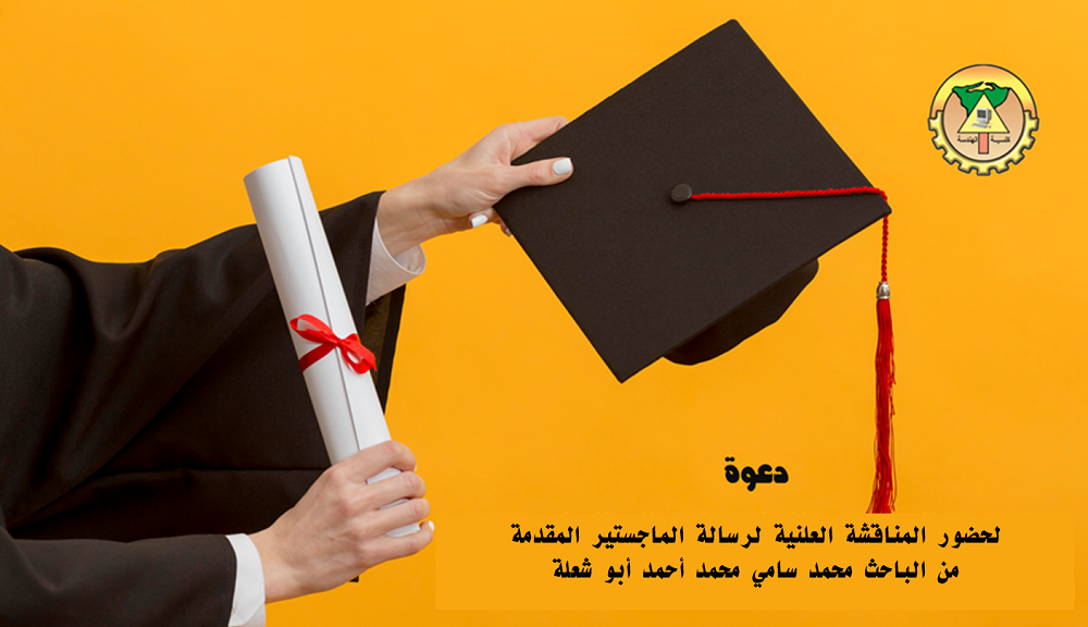 يعلن قطاع الدراسات العليا والبحوث بكلية الهندسة جامعة طنطا وقسم هندسة القوي الميكانيكية بالكلية عن موعد انعقاد المناقشة العلنية الخاصة برسالة الماجستير المقدمة من الباحث