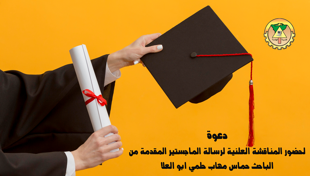 يعلن قطاع الدراسات العليا والبحوث بكلية الهندسة جامعة طنطا وقسم هندسة الانشاءات بالكلية عن موعد انعقاد المناقشة العلنية الخاصة برسالة الماجستير المقدمة من الباحث حماس مهاب حلمي ابو العلا - تحت عنوان "اداء الخازوق اكس سي سي فى التربة الطينيه المعرض لاحمال ضغط – دراسة عددية