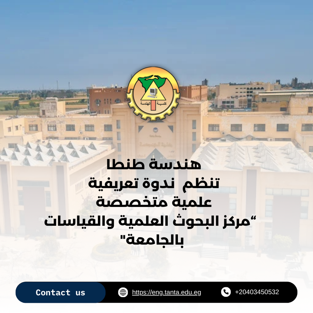 Postgraduate Studies Department at Faculty of Engineering, in cooperation with Scientific Research and Measurement Center, announces holding a specialized symposium on Scientific Research and Measurement Center at Tanta University. It is held under patronage of Prof. Mohammed Hussain, Tanta University Presi