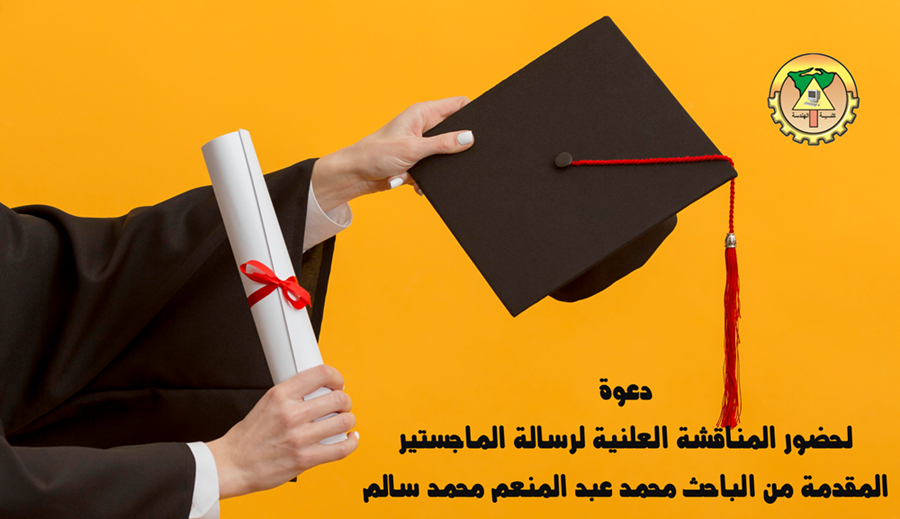 دعوة لحضور المناقشة العلنية لرسالة الماجستير المقدمة من الباحث محمد عبد المنعم محمد سالم