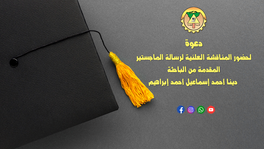 دعوة لحضور المناقشة العلنية لرسالة الماجستير المقدمة من الباحثة دينا أحمد إسماعيل أحمد إبراهيم