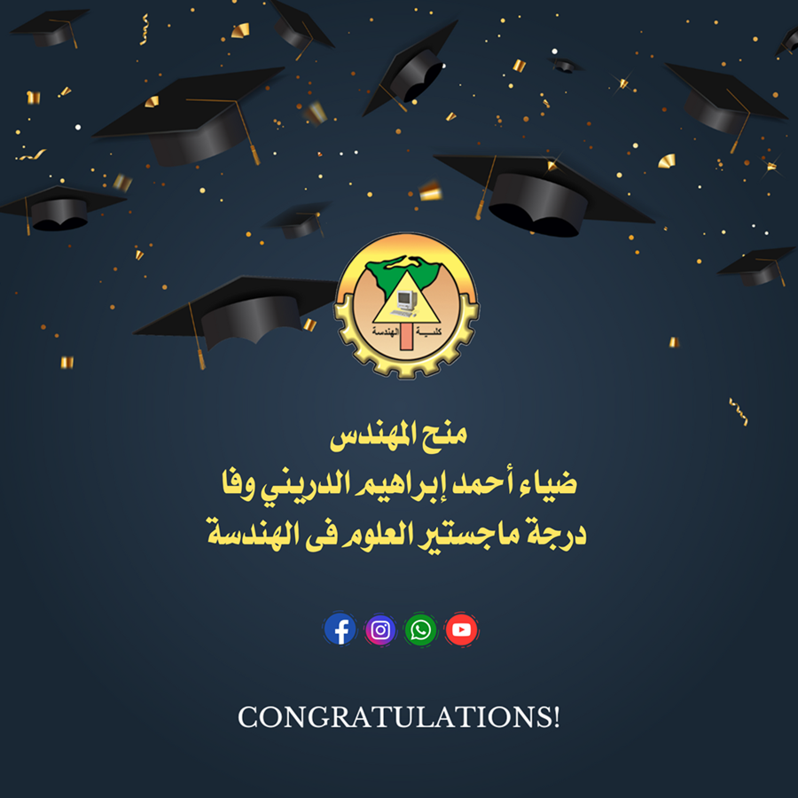 منح المهندس ضياء أحمد إبراهيم الدريني وفا درجة ماجستير العلوم فى الهندسة