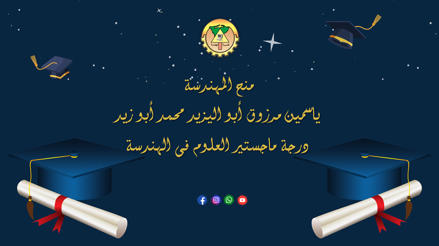 منح المهندسة ياسمين مرزوق أبو اليزيد محمد أبو زيد درجة ماجستير العلوم فى الهندسة