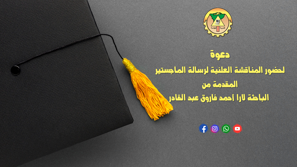 دعوة لحضور المناقشة العلنية لرسالة الماجستير المقدمة من الباحثة لارا أحمد فاروق عبد القادر