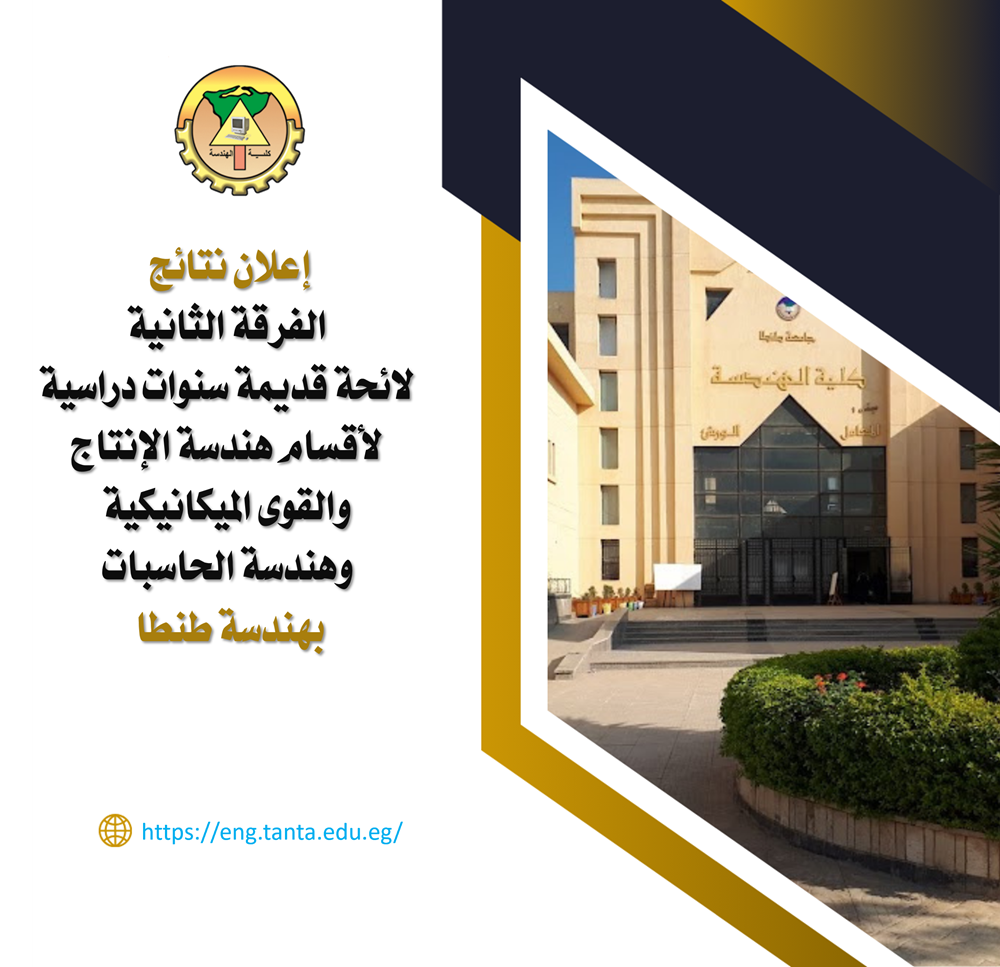 تعلن كلية الهندسة جامعة طنطا نتائج الفرقة الثانية لائحة قديمة سنوات دراسية لأقسام هندسة الانتاج والقوى الميكانيكية وهندسة الحاسبات.